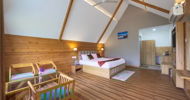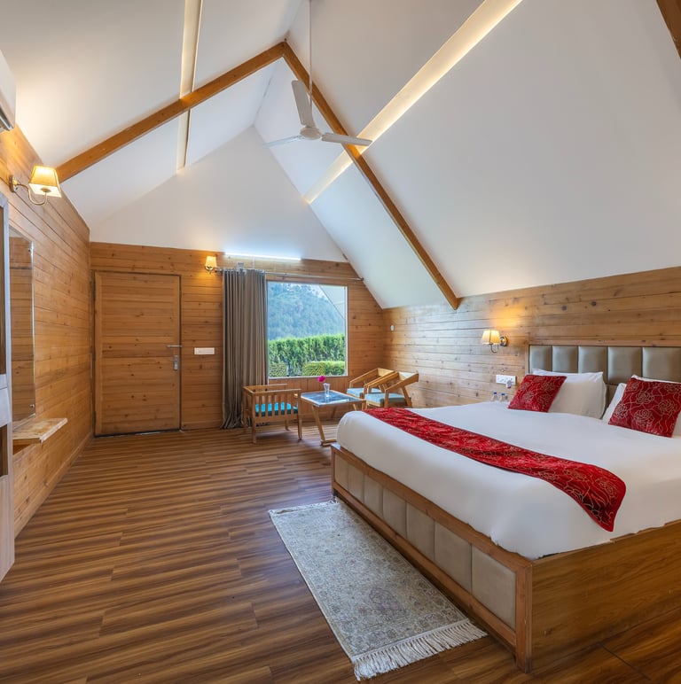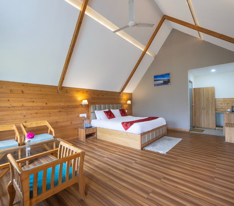 Spacious wooden interiors designed for your comfort and peaceful stay.