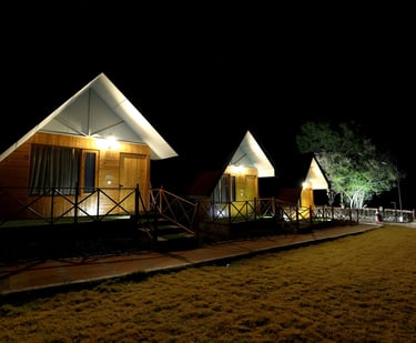 Well-furnished Swiss tents offering a perfect blend of nature and comfort, ideal for couples, families, and group getaways.